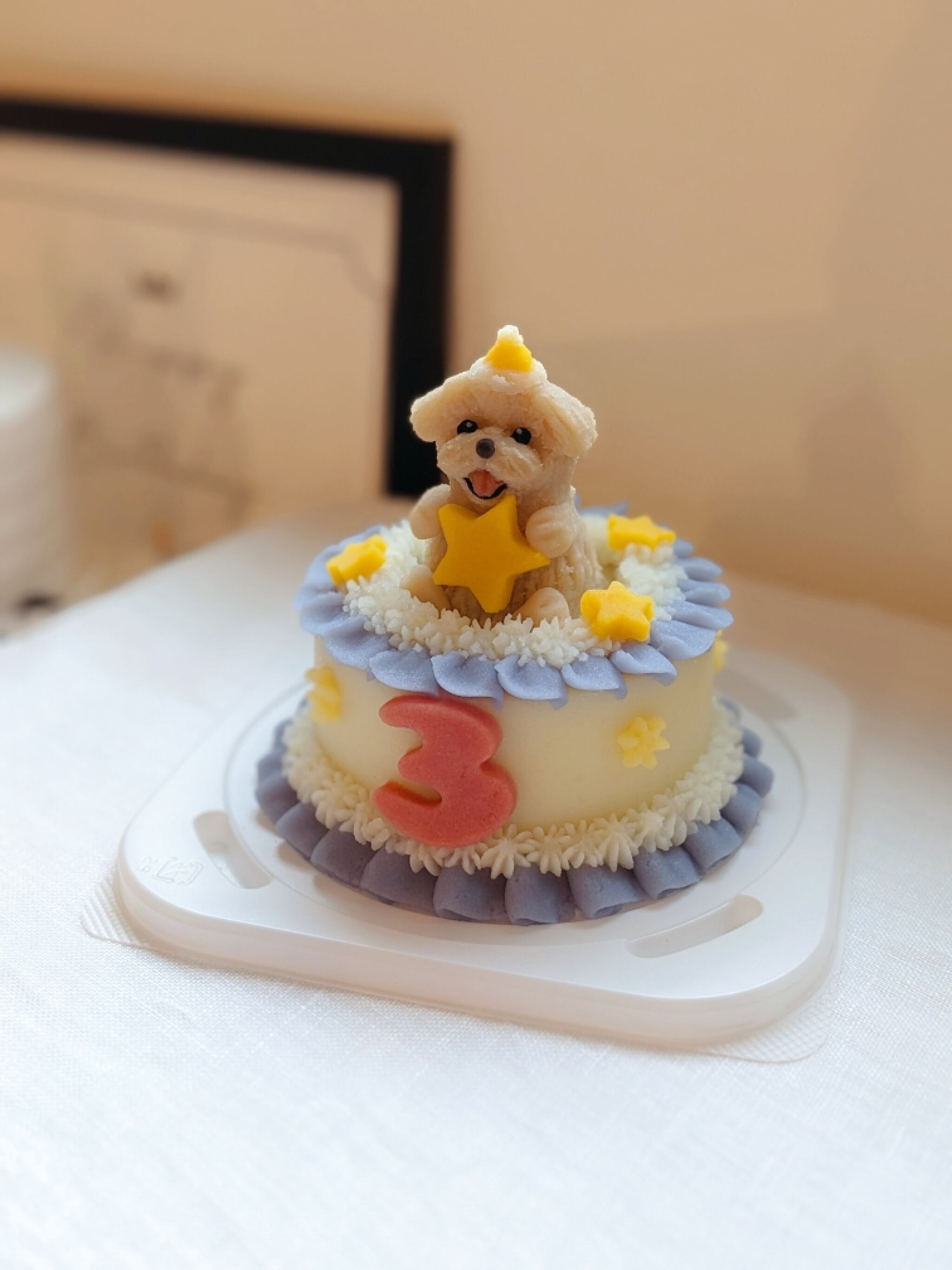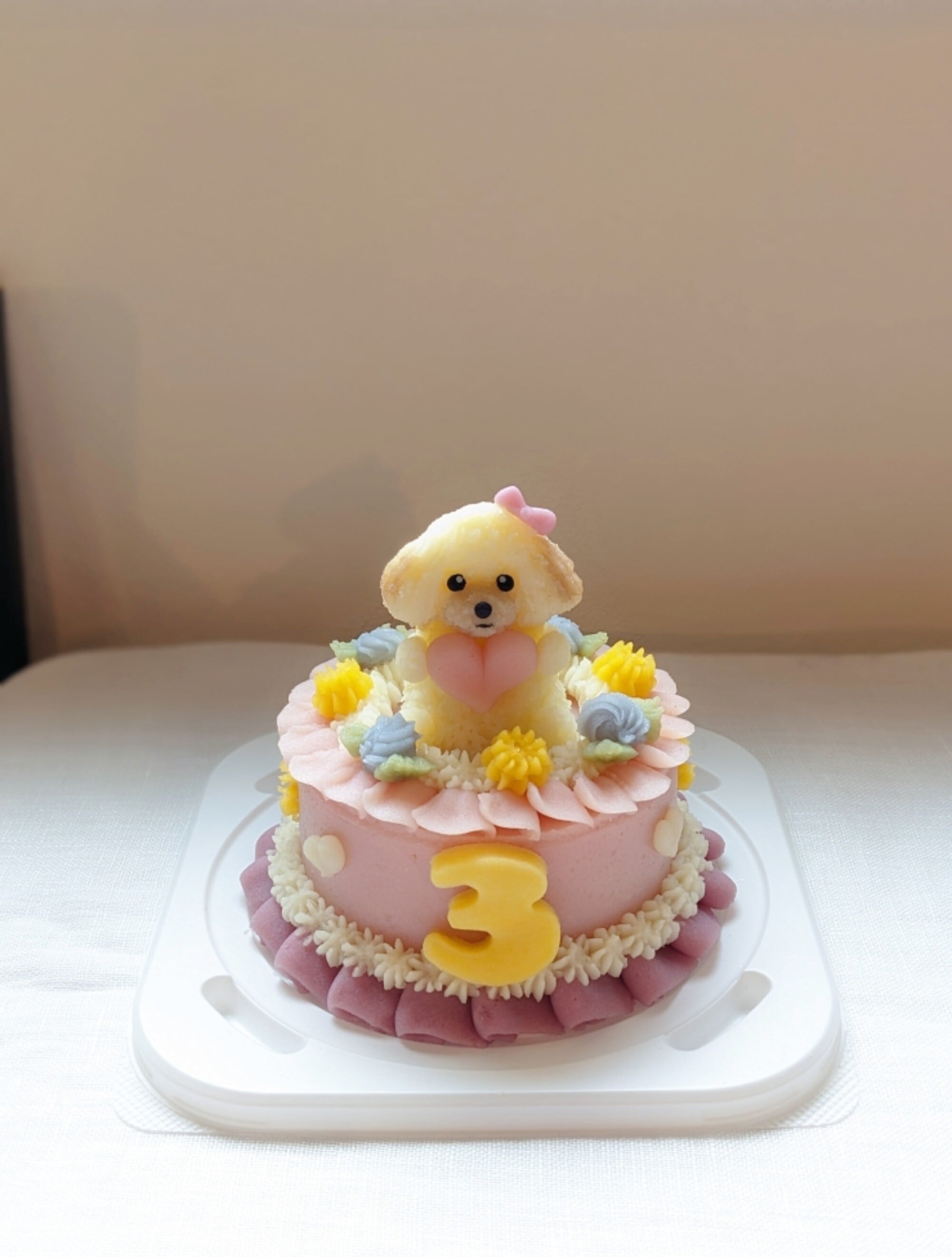 立体ケーキはあえてスポンジを使用しておりませんので記念撮影後にお水を加え電子レンジで温めて頂きますとワンちゃんに優しいスープになります。