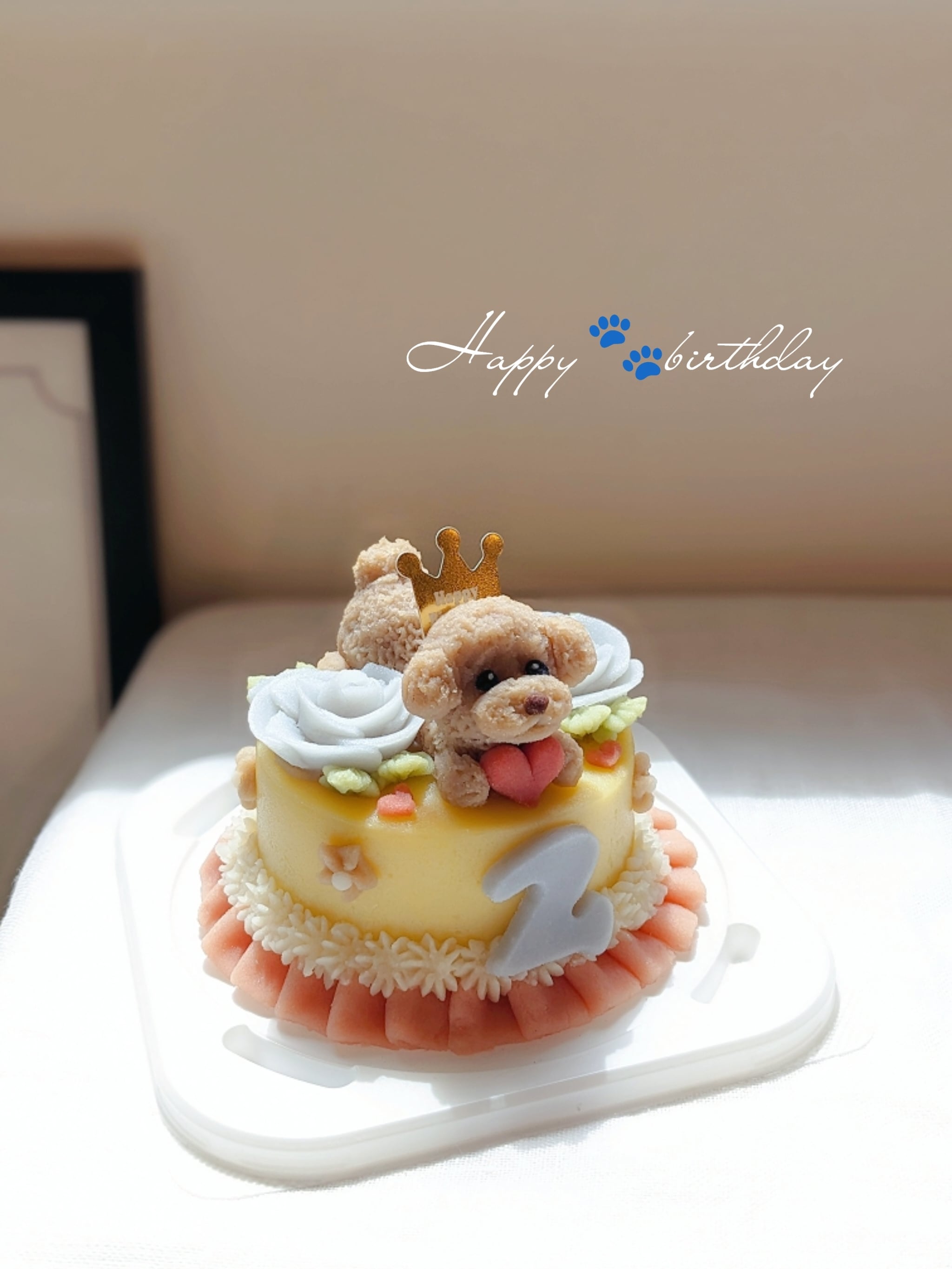 立体ケーキはあえてスポンジを使用しておりませんので記念撮影後にお水を加え電子レンジで温めて頂きますとワンちゃんに優しいスープになります。