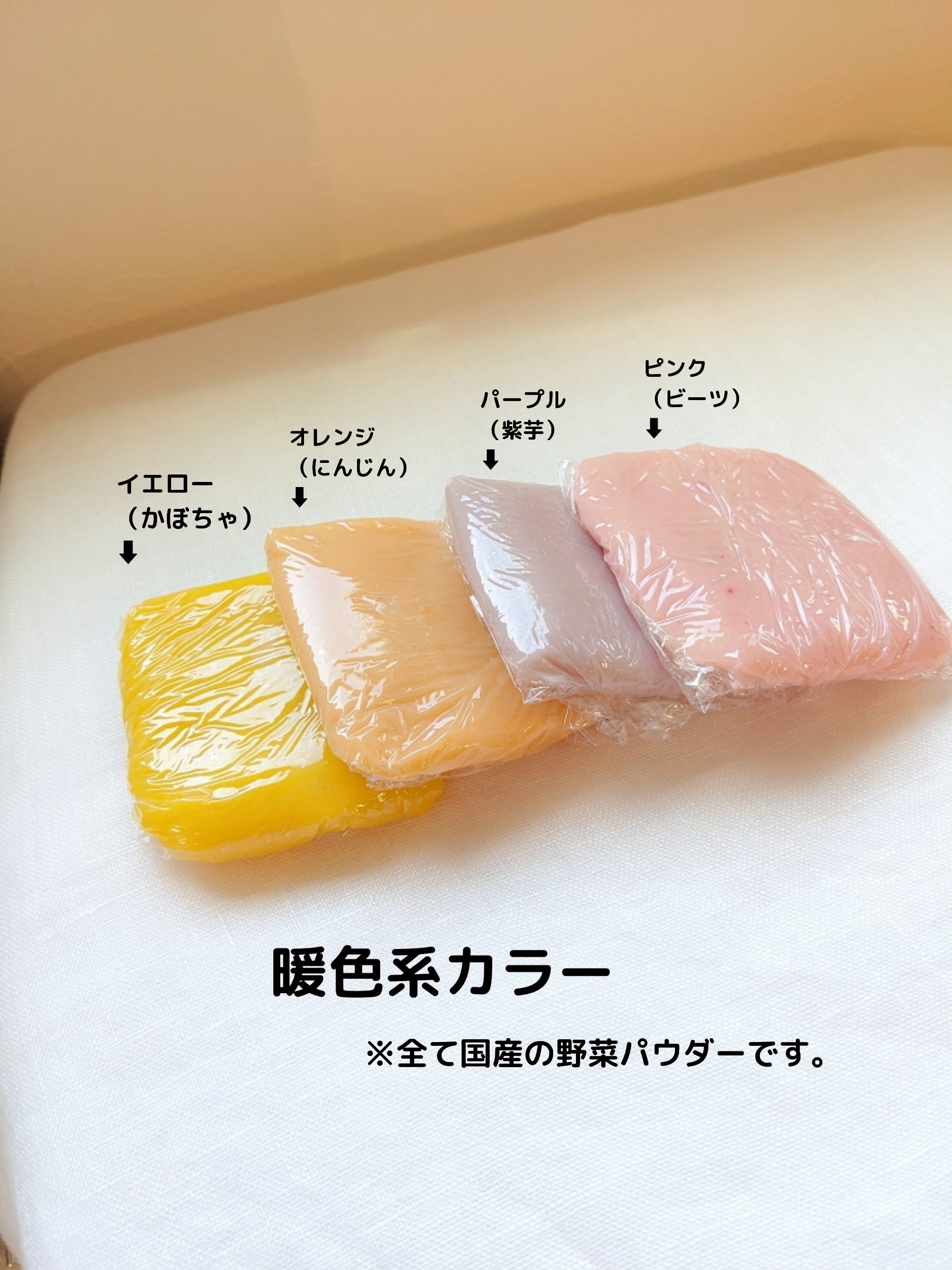 ビーツの濃いピンクは変色や色移りしますので薄いピンクでのお作りになります。ビーツの黒いツブが少し混ざりますので気になる場合は他のカラーをお選び下さい。