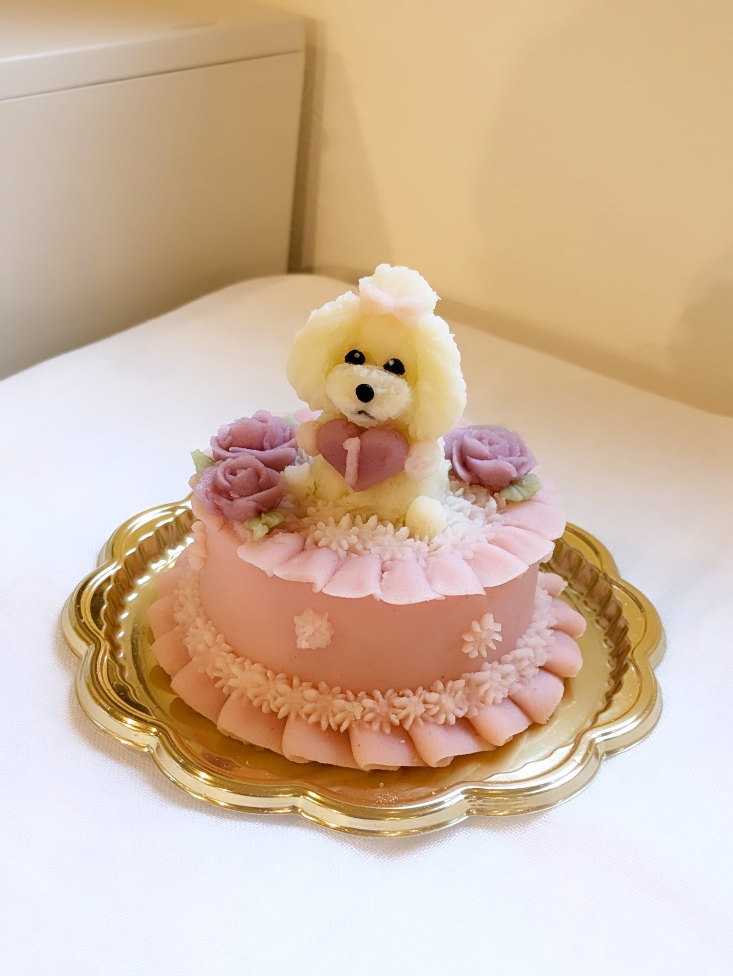 立体ケーキはあえてスポンジを使用しておりませんので記念撮影後にお水を加え電子レンジで温めて頂きますとワンちゃんに優しいスープになります。