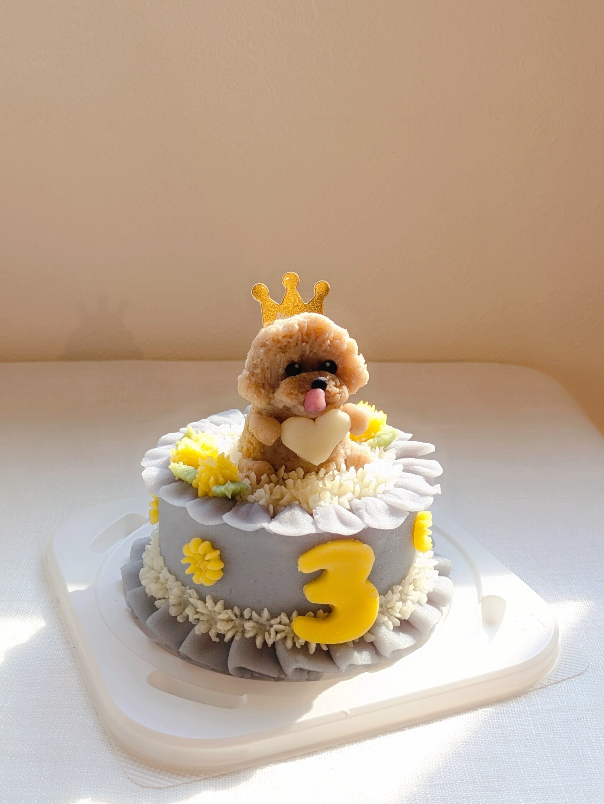立体ケーキはあえてスポンジを使用しておりませんので記念撮影後にお水を加え電子レンジで温めて頂きますとワンちゃんに優しいスープになります。